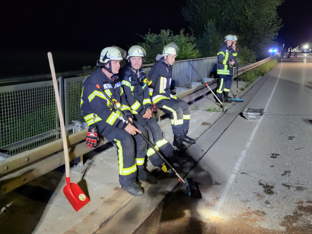 Trotzdem wurde es noch ein recht langer und kräftezehrender Einsatz, da die Fahrbahn von Trümmerteilen befreit und ausgelaufene Betriebsstoffe gebunden und aufgefangen werden mussten.